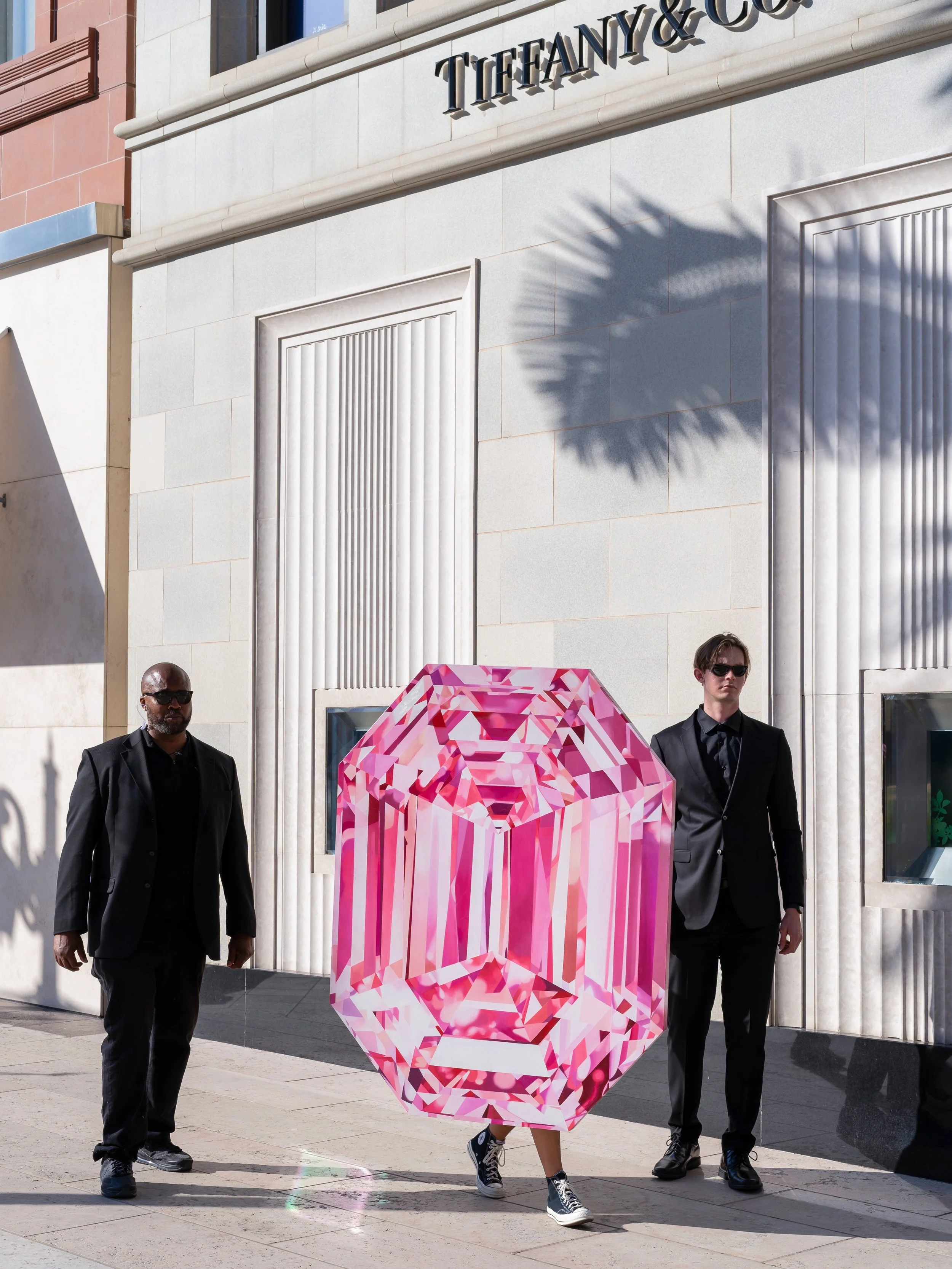 Crabtree extends this conversation through video documentation of her performances, as she walked with her diamond paintings on Rodeo Drive (Beverly Hills’ iconic luxury shopping destination). These videos reflect the spectacle of wealth and consumption, placing her work directly into the environments it critiques and celebrates.